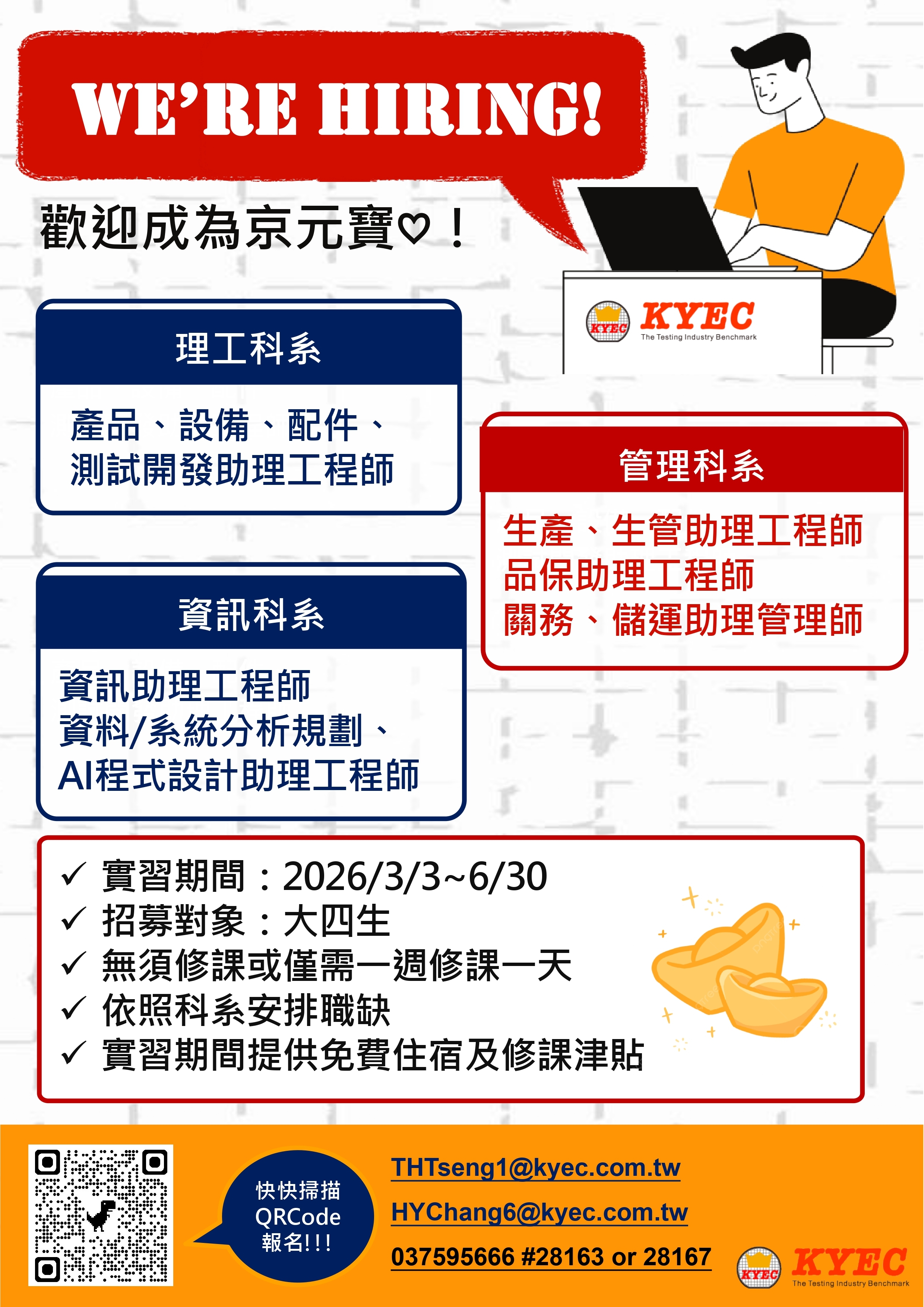 【實習徵才】【京元電子】大四下學期實習或全學年實習